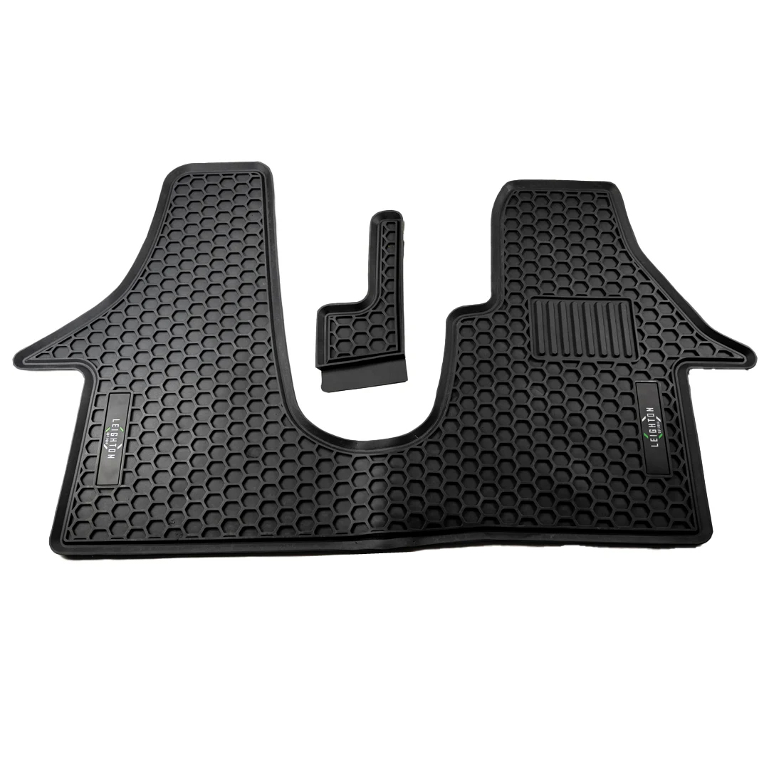 Manufactured by Leighton Vans, this Heavy Duty 2.5D Rubber 1 + 2 Front Mat is tailored to fit the Volkswagen T6 Transporter and Caravelle van models from 2015 onwards.