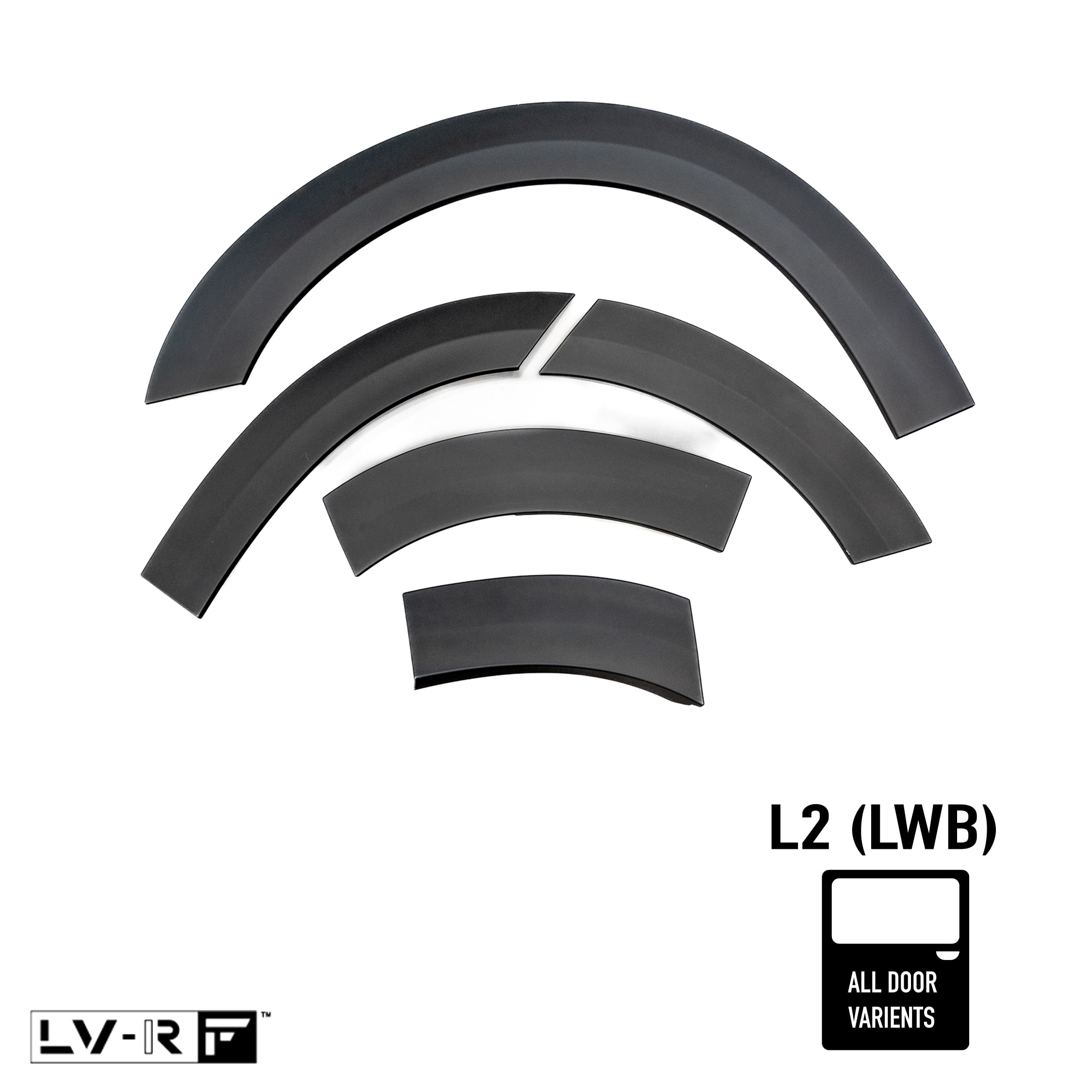 The LV-RF Wide Wheel Arch Kit offers a deeper, more muscular interpretation of the standard LV-RF arches for the Ford Transit Custom V710 L2. Designed to add visual weight and road presence, these arches enhance the overall stance while retaining a clean OEM+ finish.