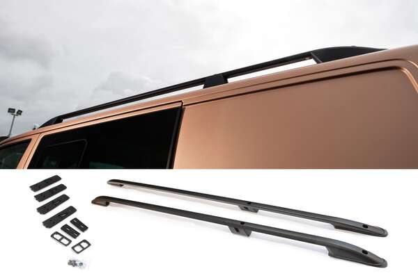 These SWB black roof bars by Leighton Vans are built to offer the ultimate in practicality for your VW T5, T6 or T6.1 van. Not only do they look great, but they also unlock a host of new possibilities, allowing you to securely transport items on the roof.